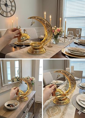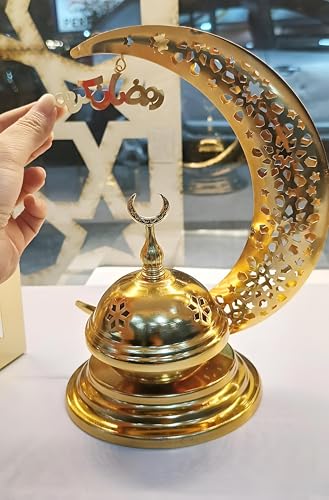 Generic - مبخرة هلال - مبخرة هلال فاخرة مصنوعة من الستانلس ستيل مع لمسة نهائية ذهبية وسلسلة تعليق؛ مثالية للبخور خلال شهر رمضان، مما يضيف لمسة من الأجواء المقدسة إلى مساحتك.