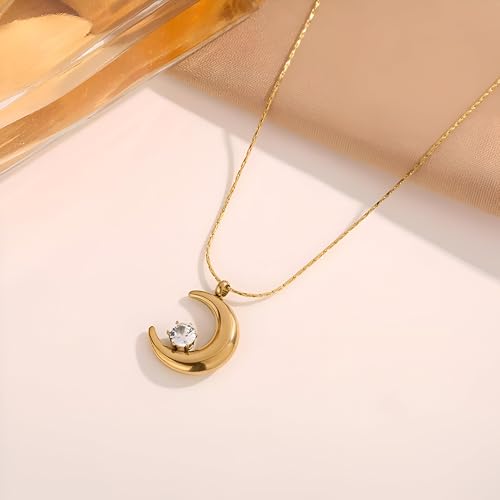 Generic - دلاية على شكل هلال مع هذه القلادة الكريستالية الطبيعية، مطلية بالذهب، تجمع بين الجمال والروعة ومثالية لأي مناسبة