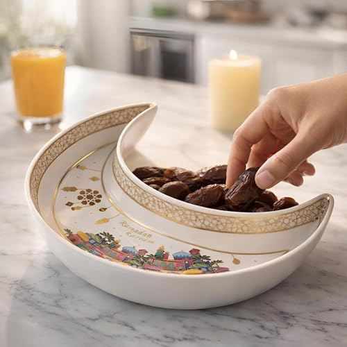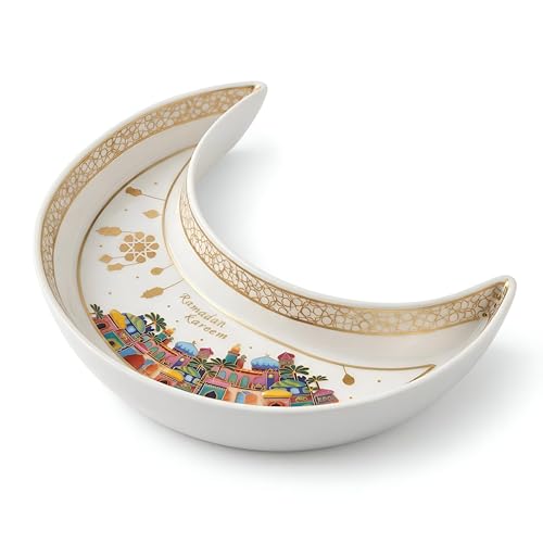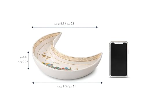 - مصنوع من البورسلين الأنيق على شكل هلال، يتميز طبق العشاء هذا بمنحنيات ناعمة متدفقة تذكرنا بالسماء المضاءة بالقمر، مما يضيف لمسة شعرية وراقية إلى أي طاولة عصرية أو تجربة طعام رسمية.