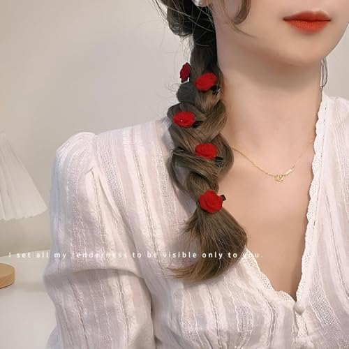 - تبرز الورود الحمراء الأنيقة جمالك الطبيعي وتجذب الإطراءات، مما يجعل كل تصفيفة شعر تبدو منعشة ورومانسية وآسرة.