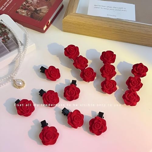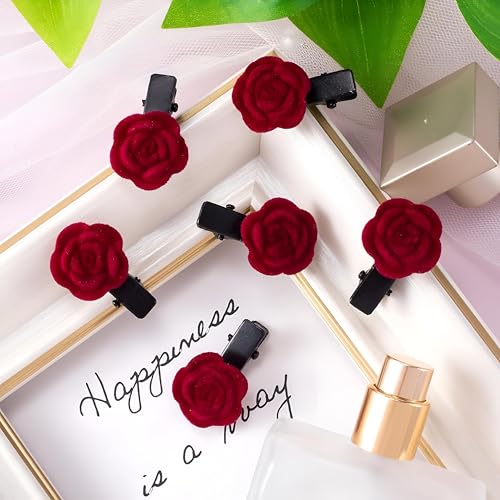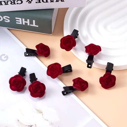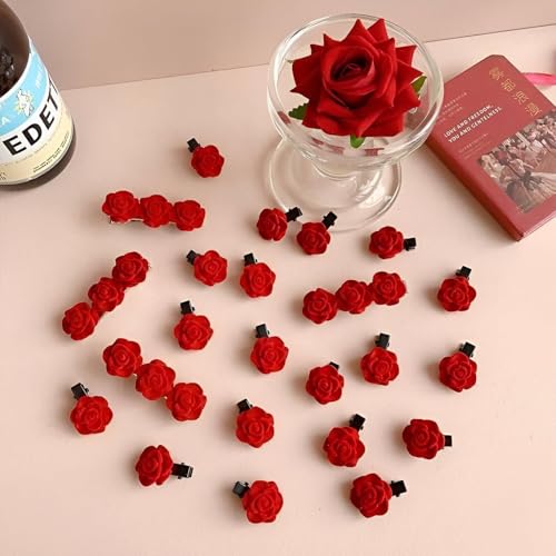 Generic - دلاية كريمسون تشارم - مشابك شعر صغيرة قطيفة حمراء فاخرة على شكل وردة تقدم تسريحة رائعة للعرائس ووصيفات العروس والنساء المحبات للموضة في المناسبات الأنيقة