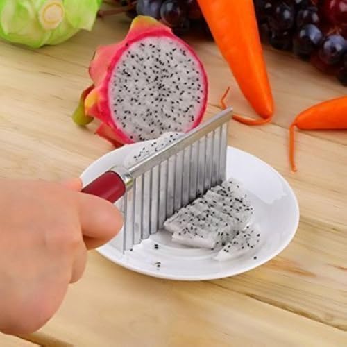 Generic - سكينة خضروات مموجة للتقطيع المجعد بشفرة متعرجة من فولاذ مقاوم للصدأ للبطاطس والمخللات، قطاعة شرائح مسننة حادة بمقبض متين للبطاطس المقلية والشيبسي والتحضير الإبداعي للطعام