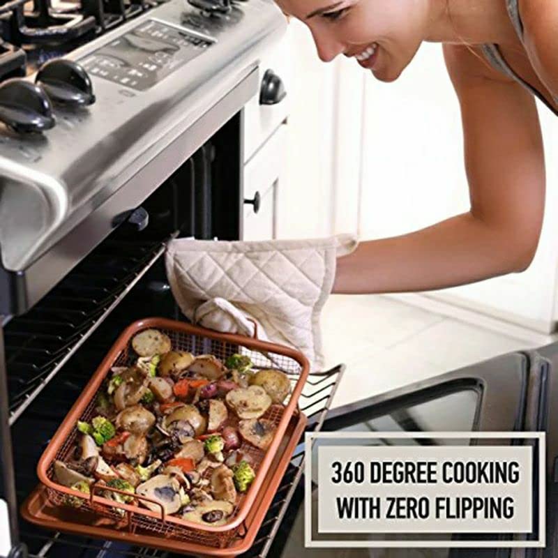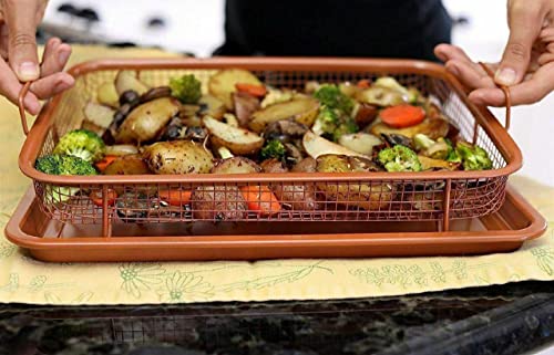 Generic - صينية لخبز المقرمشات في الفرن ، مع سلة قلي مرتفعة مصنوعة من النحاس ومقاومة للالتصاق، مجموعة من قطعتين
