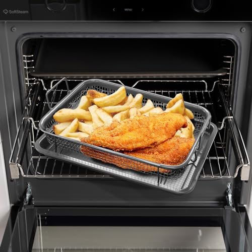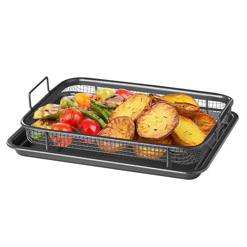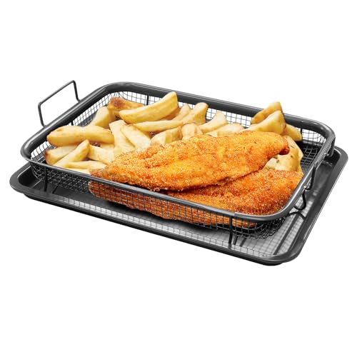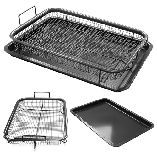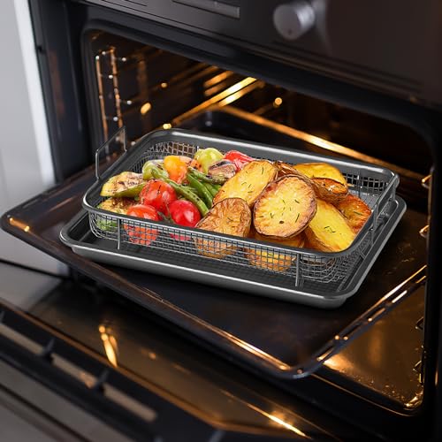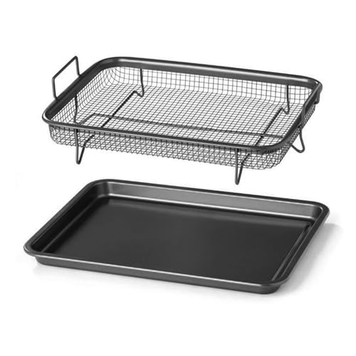 DANIEL JAMES Housewares - صينية فرن مع سلة للبطاطس المقلية، صينية شواء غير لاصقة للفرن، صينية غير لاصقة مع سلة مرتفعة للبطاطس المقلية، سلة شواء للمقلاة الهوائية، طقم أواني للطهي من قطعتين
