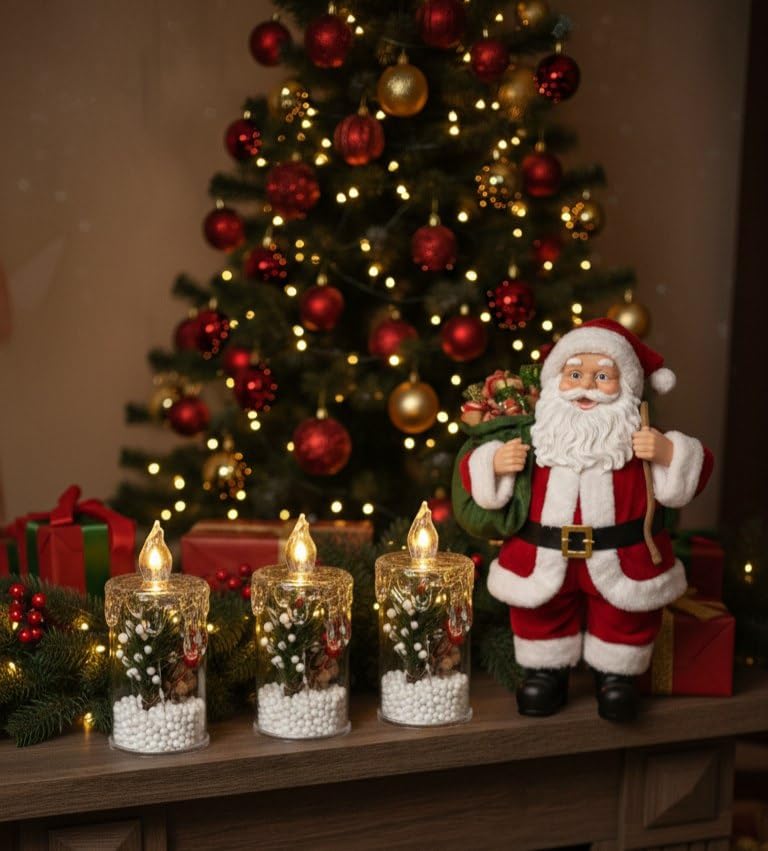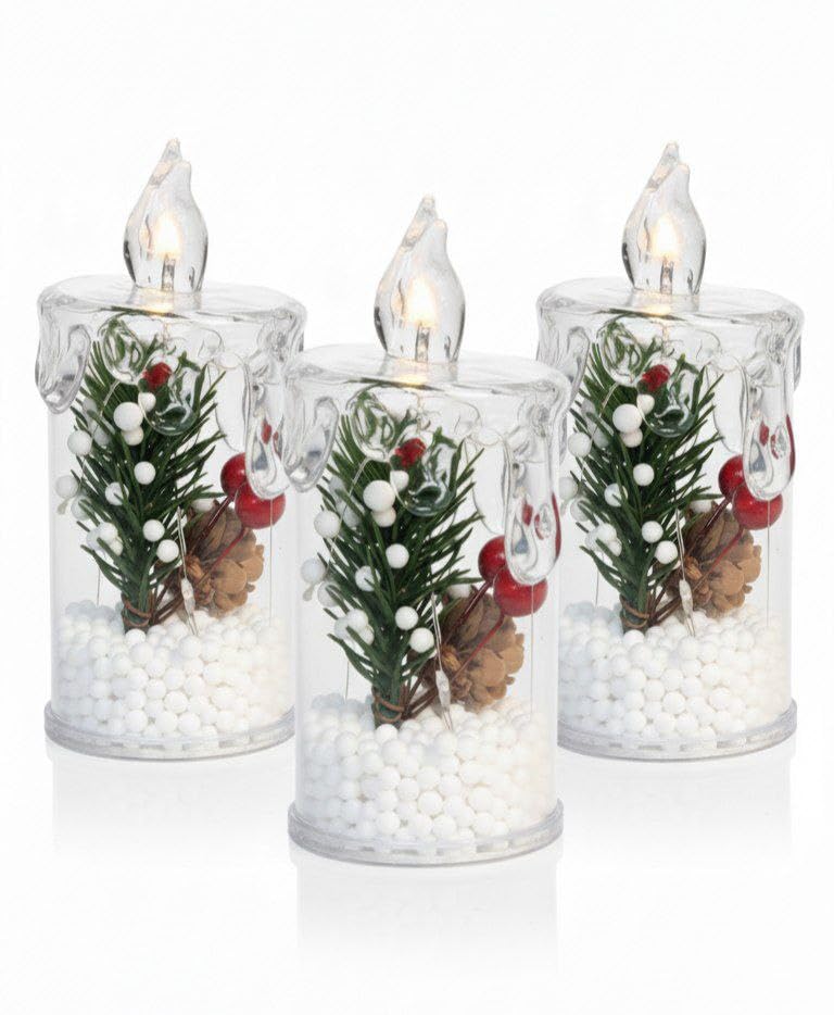 - شموع زينة بتصميم عجائب الشتاء الكريسماس، 11 سم، 3 قطع.