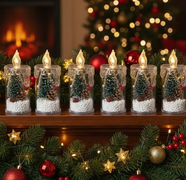 - شموع زينة كريسماس بتصميم عالم الشتاء الساحر، (مقاس 11 سم) 6 قطع.