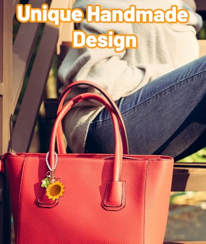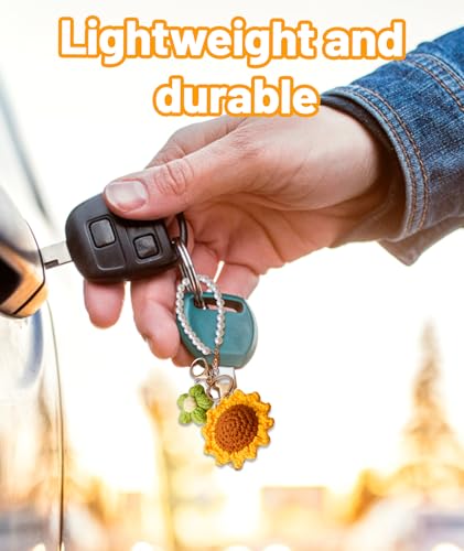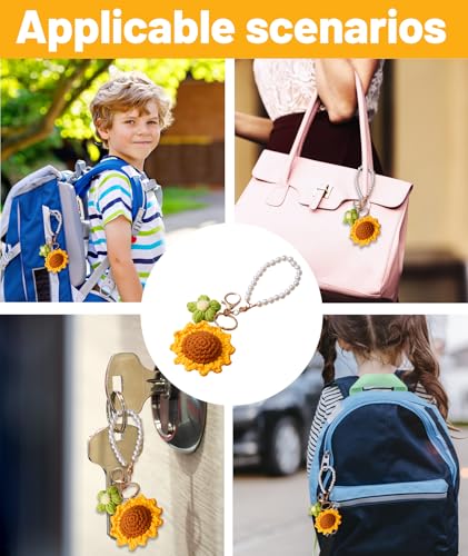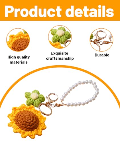 Aeenioy - سلسلة مفاتيح كروشيه مصنوعة يدويا بتصميم زهرة عباد الشمس للبنات، تعليقة شنطة لطيفة مع سوار من اللؤلؤ، حلقة مفاتيح جمالية لحقيبة الظهر، هدية فريدة للصديقة
