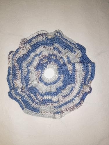 five creative - مفرش طاولة دائري كروشيه، ٣٠ سم، أبيض وأزرق، صناعة يدوية