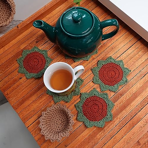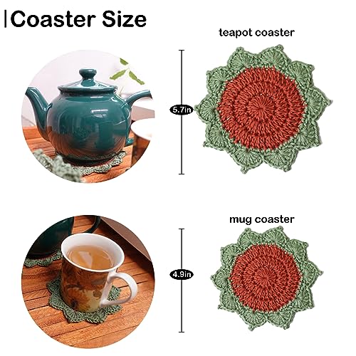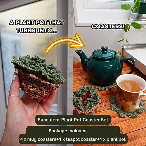 Agromusk - مجموعة قواعد أكواب كروشيه على شكل نبات عصاري تتحول معًا إلى نبتة عصارية للطاولات والمكتب بتصميم لطيف وفريد بأسلوب بوهيمي مناسبة كهدية للمنزل الجديد، طقم من 6 قطع