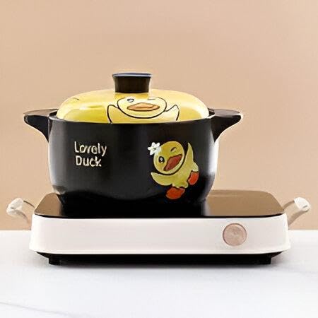 Generic - وعاء فخاري - عزز جماليات مطبخك مع طبق السيراميك الأصفر الكوري الفاخر المزين برسومات البط الكرتونية، مثالي لطهي القدر الساخن، ودولسوت بيبيمباب، والحساء لعدد 2-3 أشخاص.