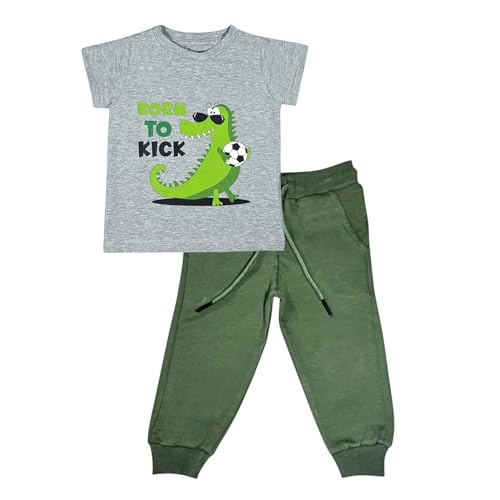 Baby Co. - طقم تمساح (تي شيرت رمادي + بنطلون رياضي أسود)