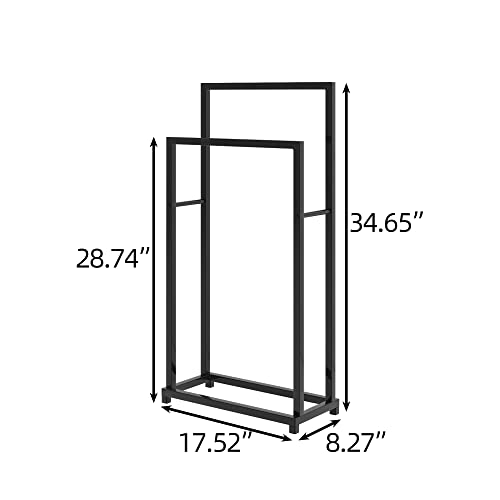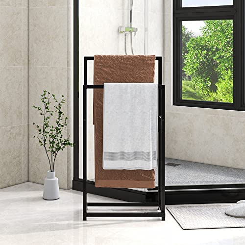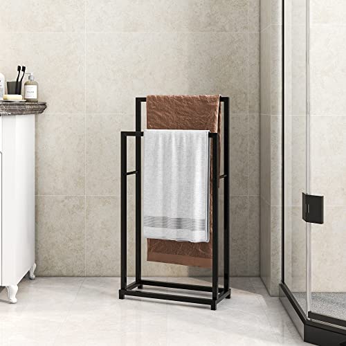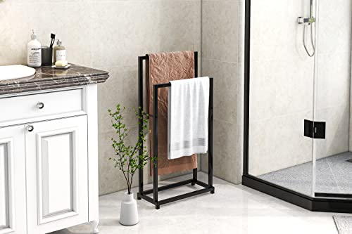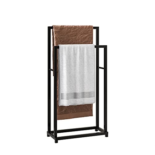 Crocofair - رف مناشف معدني من كروكوفير، حامل مناشف قائم بذاته من طبقتين للحمام وغرفة المعيشة وغرفة الغسيل والاماكن الداخلية والخارجية (طبقتان، اسود)