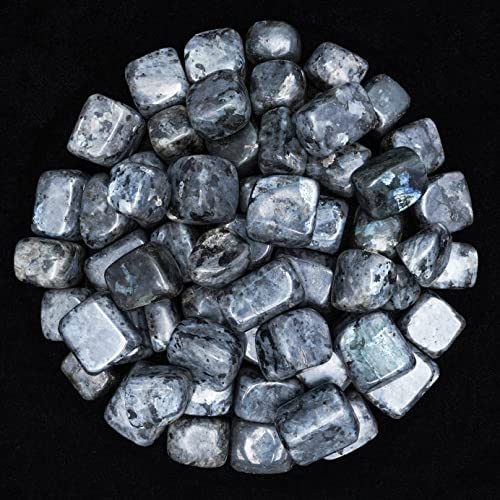 Crocon - مجموعة احجار كريمة للجيب كريستال احجار استشفاء كريمة، حجر بحجم راحة اليد لجلب الحظ الجيد، هدية دلايات حرفية لديكور المنزل من كروكون، لارفاكيت، الحجم: 20-25 ملم | رطل واحد