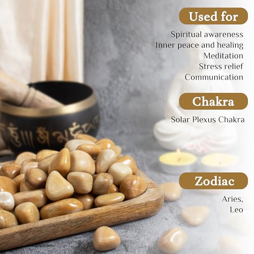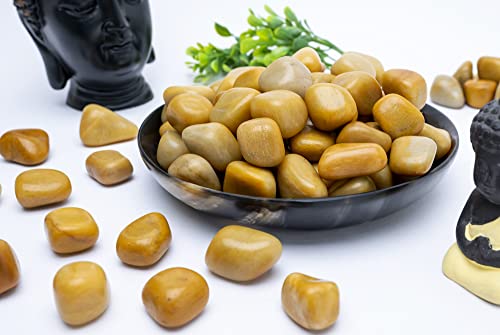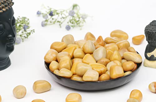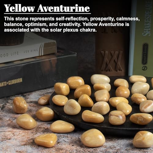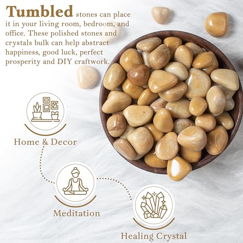 Crocon - مجموعة احجار كريمة للجيب كريستال احجار استشفاء كريمة، حجر بحجم راحة اليد لجلب الحظ الجيد، هدية دلايات حرفية لديكور المنزل من كروكون، افينتورين اصفر، المقاس: 20-25 ملم | رطل واحد
