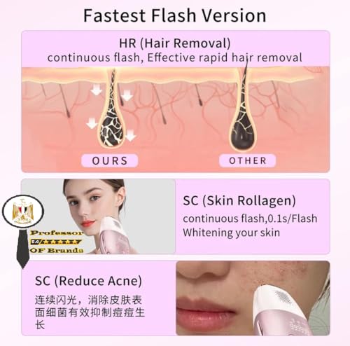 - وظائف متعددة للعناية بالبشرة: يوفر وضع HR لإزالة الشعر المستمرة ووضع SC لتحفيز الكولاجين وتفتيح البشرة وتقليل حب الشباب بفلاش سريع 0.1 ثانية
