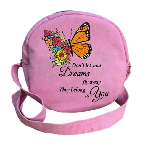 Generic - شنطة كروس دائرية - 25 سم - بينك - طباعة على جانب واحد - تصميم تحفيزي - لا تدع احلامك تطير، نحن نطبع هديتك