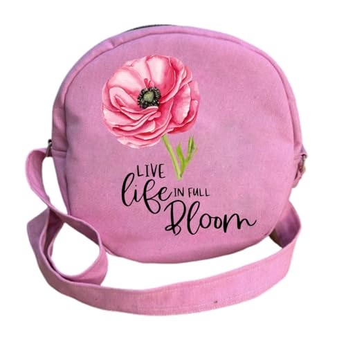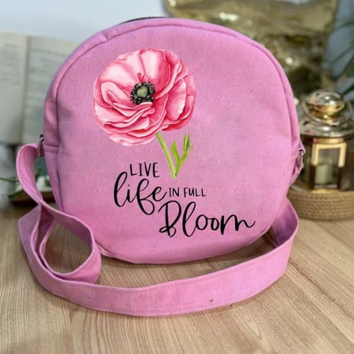 Generic - شنطة كروس دائرية - 25 سم - وردي- طباعة على جانب واحد - تصميم تحفيزي - Live in full bloom من وي برينت يور جيفت