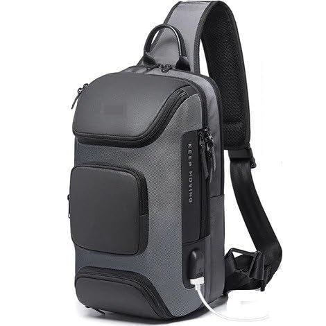 شنطة كروس - تسع لاب توب صغير 12 بوصة - خامات من الجلد وقماش الواتر برووف - مقاومة للماء - - للكبار من الجنسين - لون الرمادى