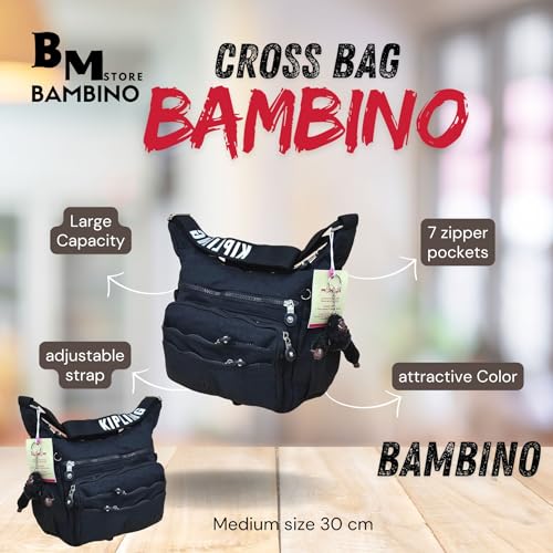 Generic - شنطة كتف كروس مزودة بـ 7 جيوب بسوستة للنساء والبنات، شنطة على شكل محفظة صغيرة أنيقة مع حزام قابل للتعديل - أسود، مقاس متوسط