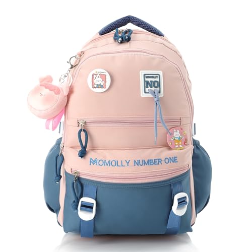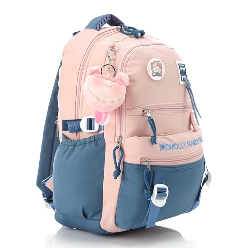Crossland - كروسلاند شنطة ظهر للاطفال والمراهقين مقاس 18 انش (48 سم) مع شارات زخرفية، شنطة مدرسية متينة - بينك وتركواز