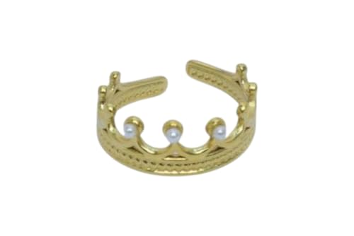 Generic - خاتم مفتوح من الستانلس ستيل بتصميم تاج لؤلؤي - ذهبي