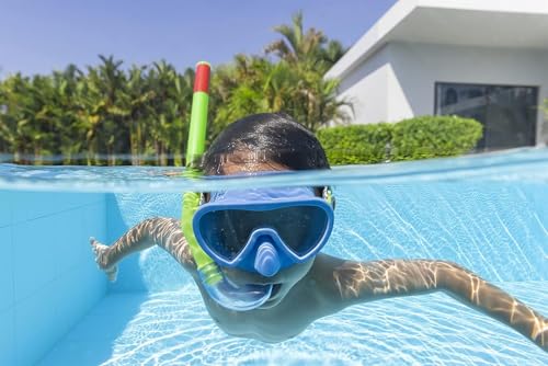 - حماية من الأشعة فوق البنفسجية: يحمي عيون طفلك من الأشعة فوق البنفسجية الضارة مما يسمح له برؤية كل لحظة تحت الماء بوضوح. يأتي أنبوب التنفس مع قطعة فم ناعمة ومريحة لساعات لا حصر لها من المرح