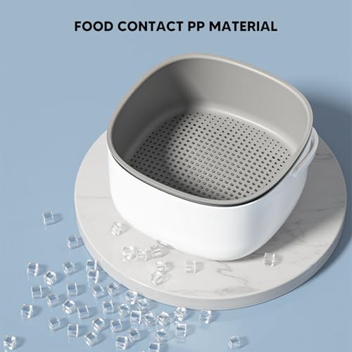 - 【مادة بولي بروبيلين الآمنة غذائيًا】: تم تصنيع جهاز غسل الخضروات والفواكه من مادة البولي بروبيلين الآمنة تمامًا للاستخدام الغذائي وهي مادة غير سامة وصديقة للبيئة وتتميز بمتانة عالية.