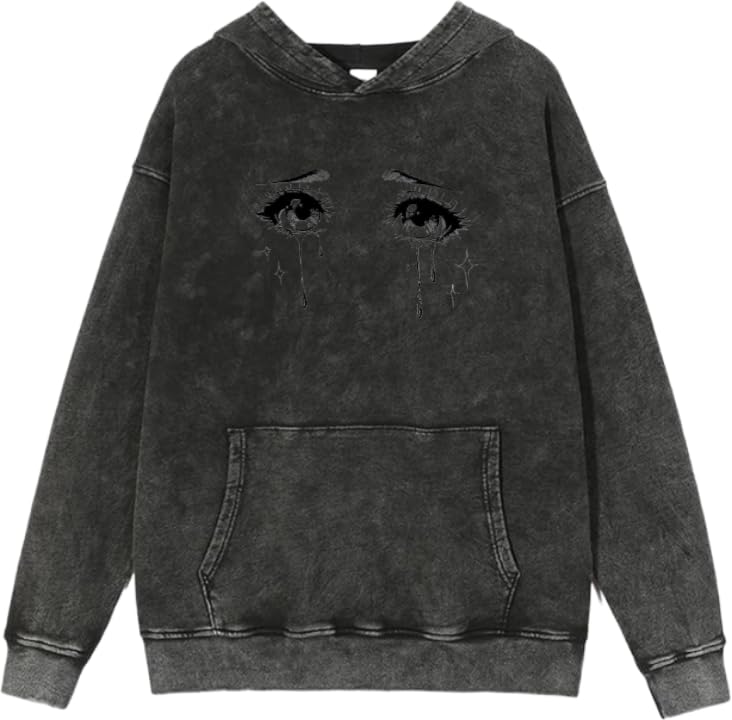Generic - سويت شيرت بغطاء للرأس مطبوع عليه رسمة انمي عيون بدموع، تصميم ايمو