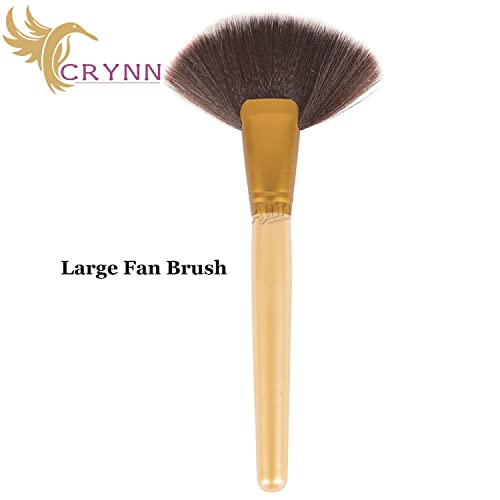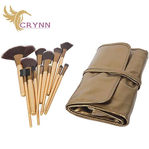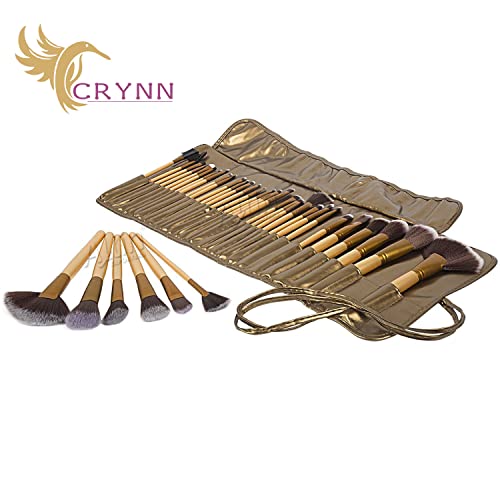 CRYNN - 32 قطعة من فرش المكياج الخشبية الاحترافية للنساء والفتيات من كراين، مجموعة مكياج حفلات الزفاف مع حقيبة جلدية