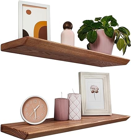 Crysellewoods - ارفف عائمة من خشب الشيشام الصلب من كريسيل وودز، مجموعة من 2 رف ريفي، ارفف حائط خشبية لغرفة المعيشة وغرفة النوم والمطبخ والحمام والمزرعة (خشب شيشام صلب هندي) (بني)