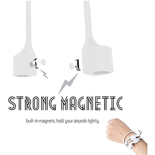 CRYSENDO - سلك موصل كابل سيليكون مضاد للضياع لسماعات ايربودز وايربودز برو من كريسيندو (مغناطيسي) (أبيض نقي)