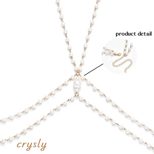 CRYSLY - سلسلة للجسم من اللؤلؤ بنمط بوهو من سينالتي، سلسلة خصر بطبقات ذهبية قابلة للتعديل، مجوهرات للجسم للنساء والفتيات، مقاس واحد