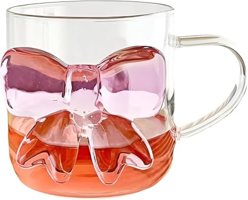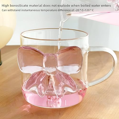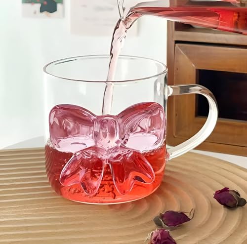 Generic - مج كريستال بفيونكة - كوب زجاج فاخر سعة 400 ملليلتر بلمسة فنية على شكل فيونكة لامعة بلون وردي، مصمّم ليجمع بين الأناقة والمتانة للاستخدام اليومي أو في المناسبات الخاصة
