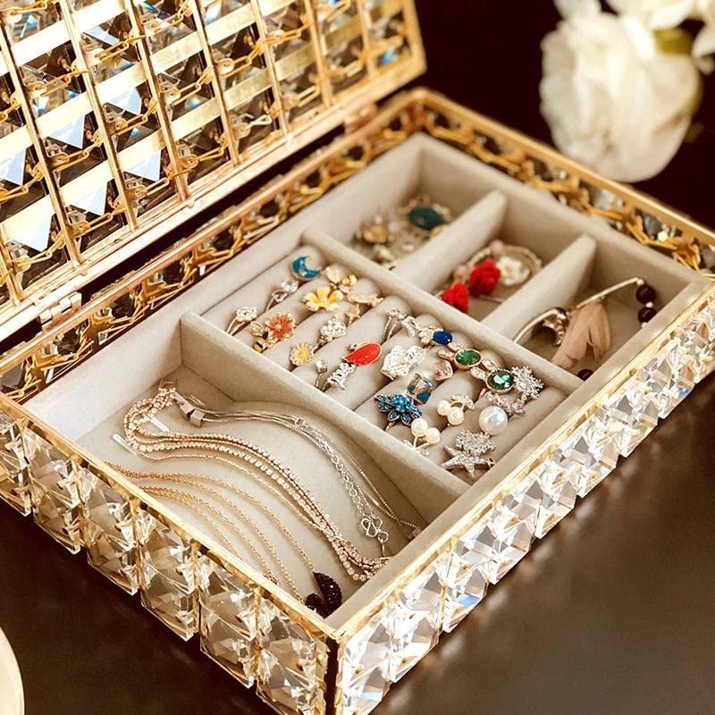 Spaceshoop - صندوق كريستال لتنظيم المجوهرات والقلائد والاقراط والمكياج من فلامينجو