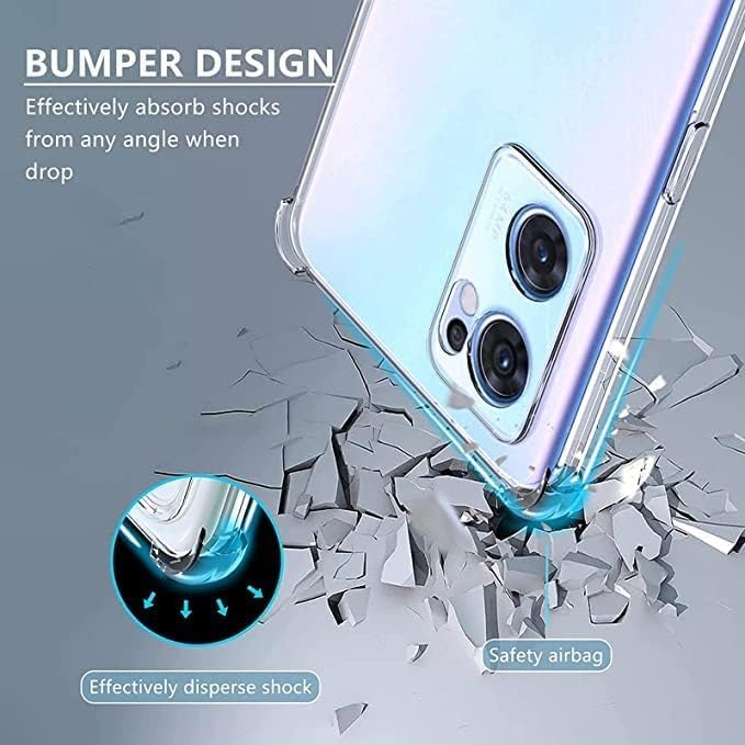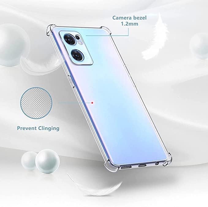 ELMO3EZZ - جراب حماية شفاف بزوايا مضادة للصدمات من البولي يوريثين المقاوم للحرارة، متوافق مع اوبو رينو 7 شبكة الجيل الخامس 5G - شفاف