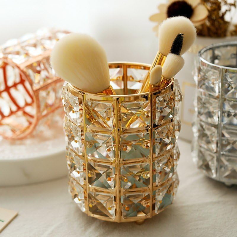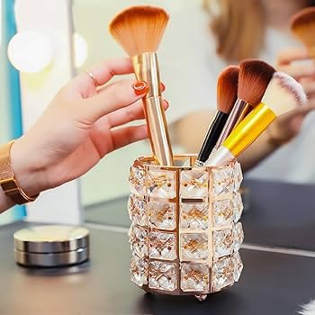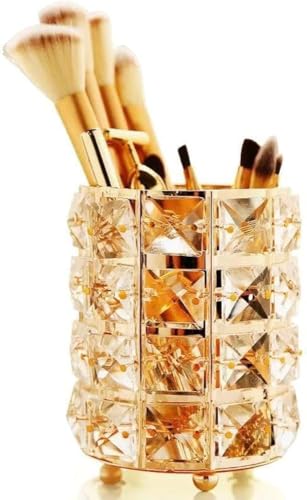 Generic - منظم مكياج كريستالي شفاف - منظم فرش مكياج - منظم مكياج أكريليك - حامل مكياج لمستحضرات التجميل، شفاف، بنقشة ماسية.