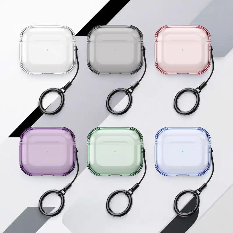 ecosystem - جراب حماية شفاف لاير بود برو 3 جراب سيليكون شفاف مزود بحلقة تعليق، متوافق مع اير بود برو 3، اكسسوارات مصنوعة من جل ناعم (وردي)