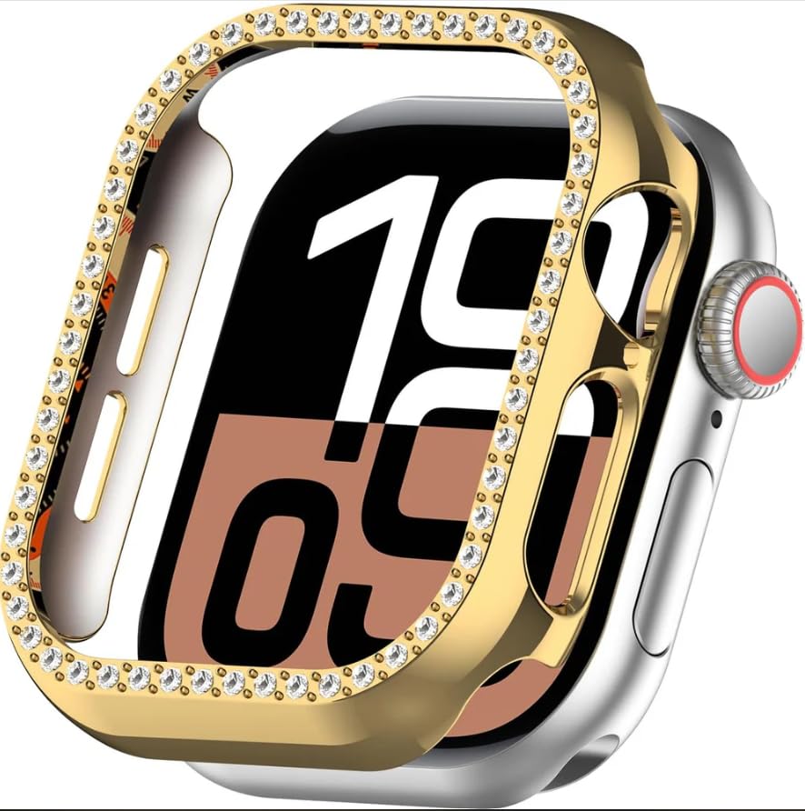 Generic - جراب هيكل الساعة بتزيين ماسي كريستالي، إطار معدني فضي مع إطار من حجر الراين، غطاء واقي ممتص للصدمات، ذهبي