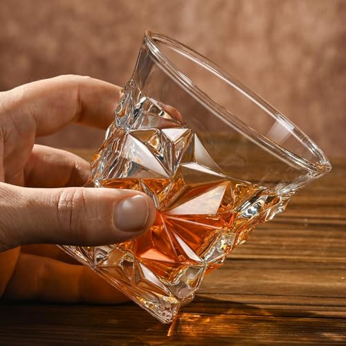 - تصميم كريستالي: زجاج ويسكي فاخر بنمط كريستالي متعدد الأوجه يعكس الضوء بشكل جميل