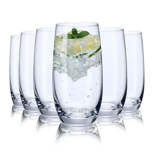 Generic - طقم اكواب شرب كريستال من 6 قطع - اكواب نبيذ وكوكتيل طويلة انيقة بدون جذع للمياه والعصير والموهيتو والمشروبات المختلطة، 13 اونصة، زجاج شفاف فاخر