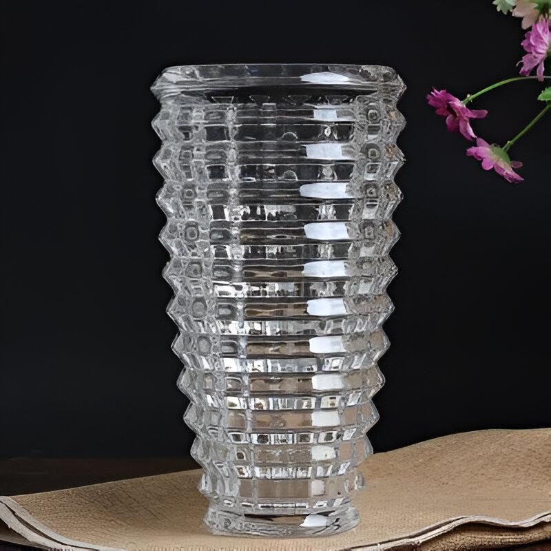 Generic - حامل زهور كريستالي - مزهرية دائرية مصبوبة للزهور الطازجة او الاصطناعية، زجاج شفاف ثقيل مع تصميم هندسي مبهر للديكور الفني (الخيار 1)