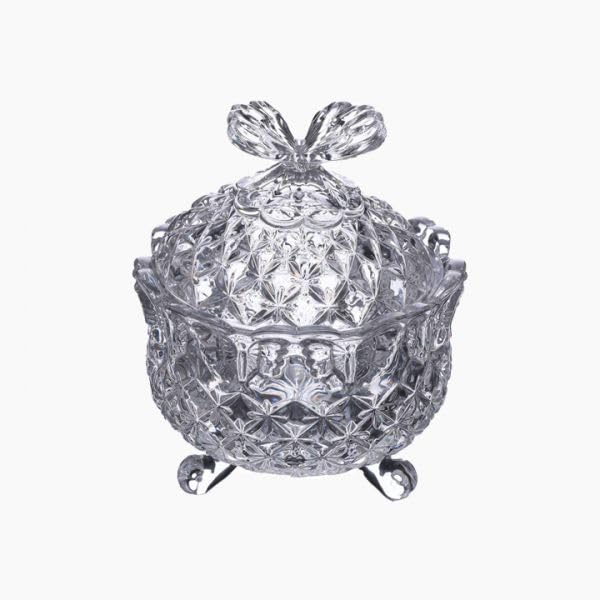 Generic - طبق حلوى من الزجاج الكريستالي مع غطاء، وعاء مزخرف مع جزء علوي على شكل فراشة، تصميم باقدام