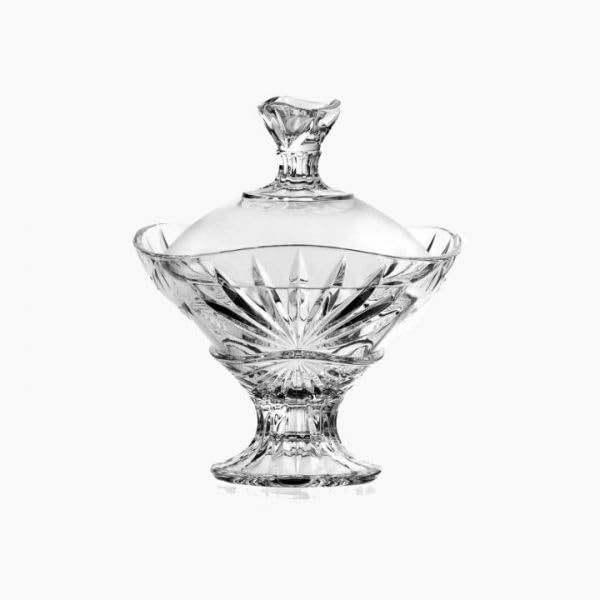 - كريستال فاخر: يتميز طبق الحلوى المصنوع من الزجاج الكريستالي بتصميم أنيق بنمط أشعة الشمس يلتقط الضوء ويعكس بشكل جميل
