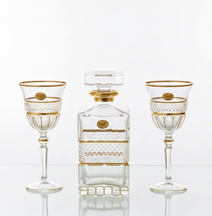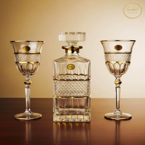 - طقم فاخر من الكريستال: يتضمن قنينة ديكانتر أنيقة مع كأسين متطابقين مصنوعة من زجاج كريستال عالي الجودة من Snabel Glass