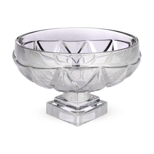 Generic - وعاء فاكهة من الزجاج الكريستالي بنمط ماسي مع قاعدة، وعاء تقديم مزخرف، شفاف