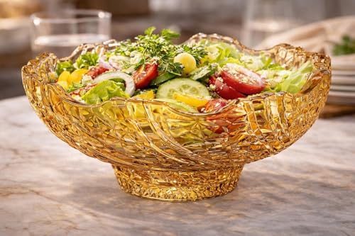 Generic - وعاء فاكهة من الزجاج الكريستالي - وعاء تقديم زجاجي شفاف انيق للفاكهة والسلطة والوجبات الخفيفة وتزيين الطاولة (عسل ذهبي)
