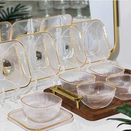 Generic - "مجموعة خشاف كريستال بتصميم جولد - مثالية للمهلبية وقمر الدين والرز باللبن، وتناسب الفواكه والمكسرات والحلويات والسلطات - تحتوي على 12 - من جينيريك