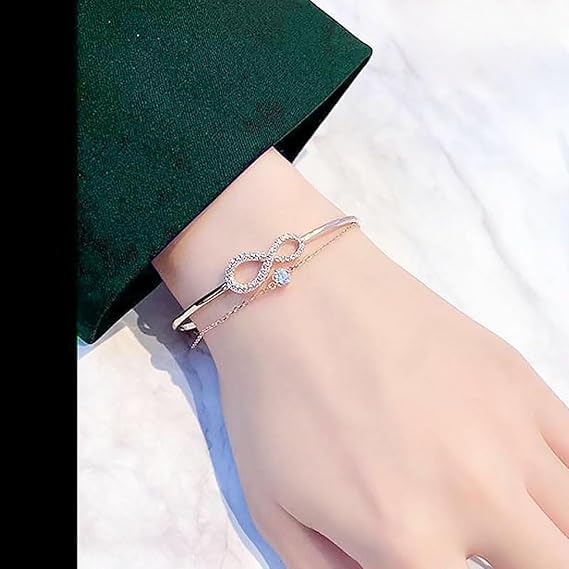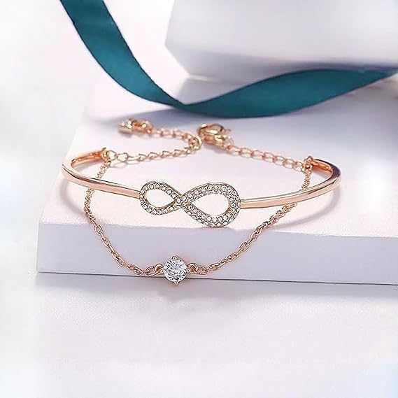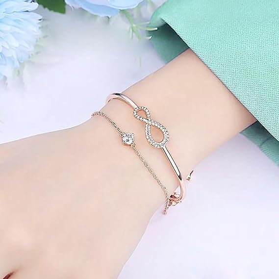 fashion mania - سوار كريستال انفينيت مطلي بالذهب الوردي للنساء هدية مجوهرات عصرية انيقة وعصرية