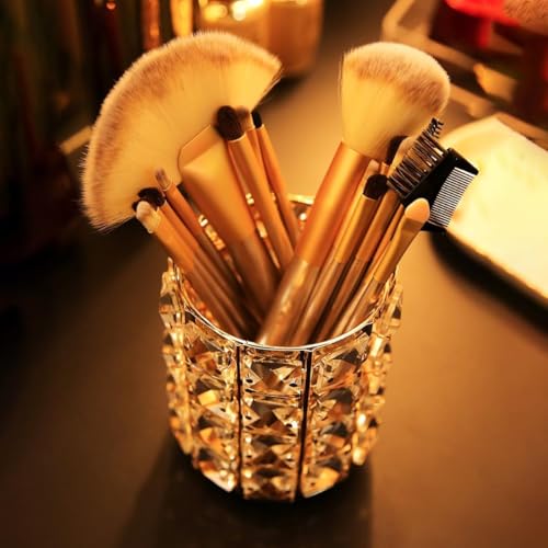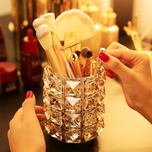 Generic - منظم فرش مكياج كريستال، حامل تخزين مستحضرات التجميل، 10 × 10 × 12 سم، ذهبي