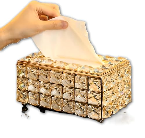 Generic - حامل مناديل كريستال - صندوق مزخرف ذهبي لامع لمناديل الوجه أو ورق المرحاض أو المناديل، مناسب للحمام أو طاولة السرير أو مكتب المكتب بأناقة راقية.